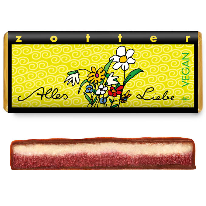 Zotter Alles Liebe – Himbeer Kokos VEGAN 70g kbA